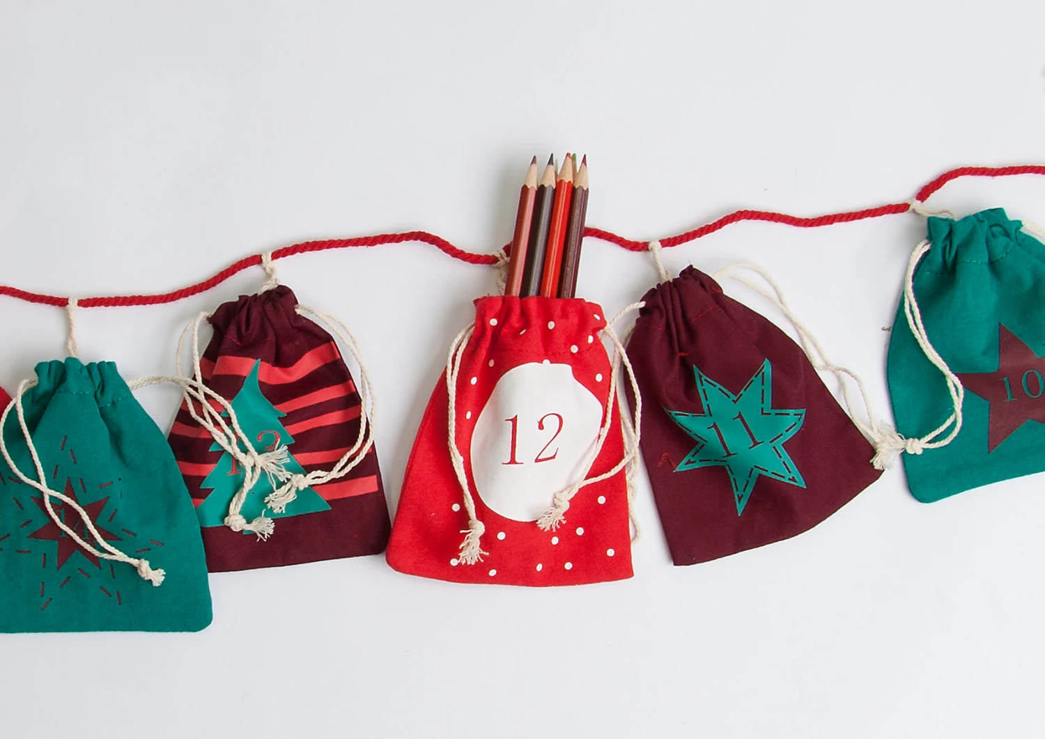 Steigere Deine Vorfreude auf das Weihnachtsfest mit unserem stimmungsvollen Adventskalender aus Stoff. Dieser besteht aus 24 Säckchen (Größe 10cm x 12,5cm) in den Farben rot und grün. Zudem sind die Stoffsäckchen mit süßen Mustern verziert und ein richtiger Hingucker! Der Adventskalender kann individuell mit Süßigkeiten oder kleinen Geschenken befüllt werden!