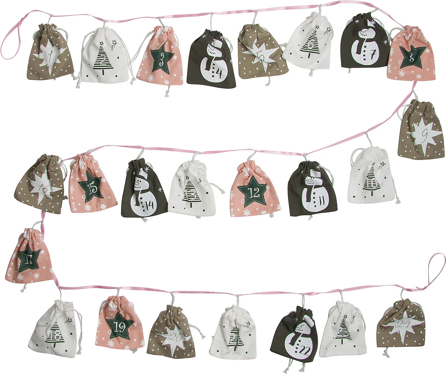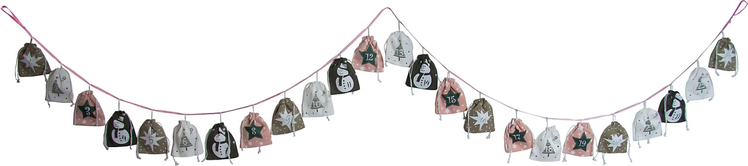 Die Vorfreude auf Weihnachten wird mit unserem tollen Adventskalender aus Stoff unvergesslich! Der Kalender besteht aus 24 Säckchen in verschiedenen Motive wie Sterne, Weihnachtsbäume und Schneemänner. Die Säckchen sind 10cm x 9cm groß und an einer Schnur befestigt, wodurch sich der Weihnachtskalender prima aufhängen lässt. Mit diesem Adventskalender machst du Deinen Liebsten auf jeden Fall viel Freude – befülle ihn individuell mit Süßigkeiten oder kleinen Geschenken!