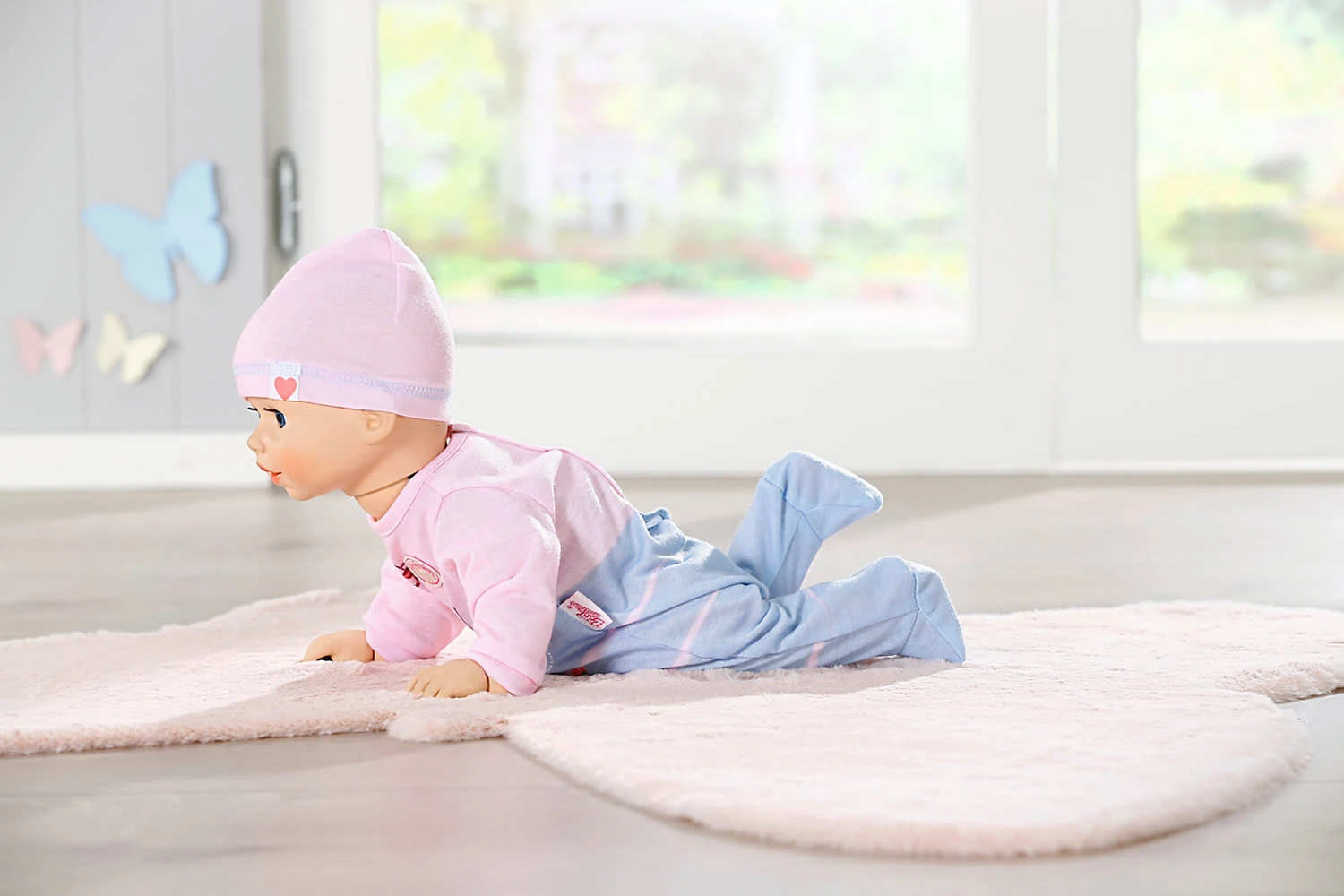 Baby Annabell lernt laufen! Ganz selbstständig krabbelt sie los und kann es gar nicht erwarten, die Welt zu entdecken. Wenn sie sich an den Händen festhalten kann, wagt sie sogar die ersten Schritte.