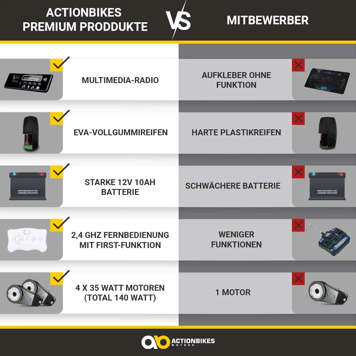 Motor: 4 Motoren 12V 35Watt (Total 140Watt)
