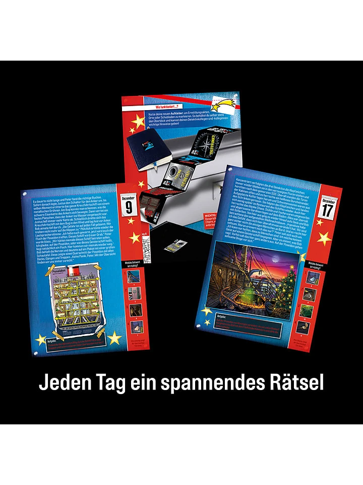 – besondere Mechanik: jeden Tag muss ein Rätsel in der Geschichte gelöst werden, um das nächste Türchen zu finden