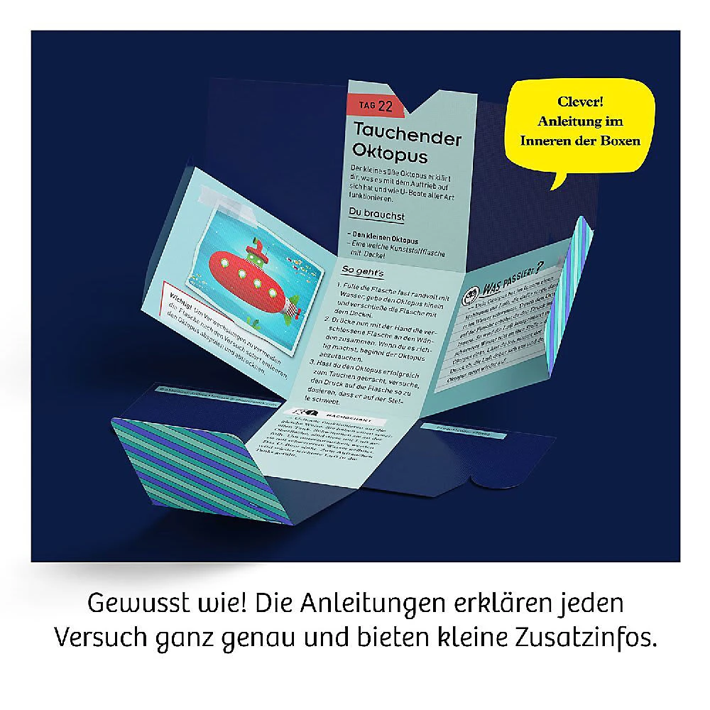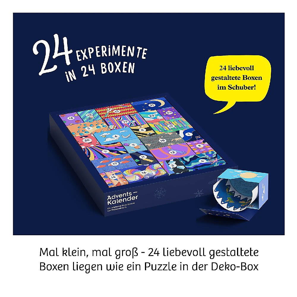 Warten kann so zauberhaft sein! Insgesamt 24 spannende Zaubertricks wollen mit dem MAGIC Adventskalender bis Weihnachten einstudiert zu werden. So wird das Warten auf Heiligabend für Nachwuchs-Magier ab 8 Jahren so spannend wie noch nie. Hinter jedem Türchen verbirgt sich ein raffiniertes Zauber-Utensil, mit dem Tag für Tag ein neuer Zaubertrick eingeübt wird. Damit die Spannung bis zum Schluss bleibt, ist die ausführlich bebilderte Anleitung mit einer japanischen Bindung ausgestattet. Mit diesem Zauberprojekt werden Feinmotorik und Selbstbewusstsein ganz natürlich gefördert. Die aufgeklappte Verpackung verwandelt das weihnachtliche geschmückte Wohnzimmer in Windeseile in eine Zauberbühne und dann heißt es: Vorhang auf für die große Zaubershow! Inhalt: 24 Zauberutensilien für magische Tricks, farbiges Anleitungsbuch mit japanischer Bindung