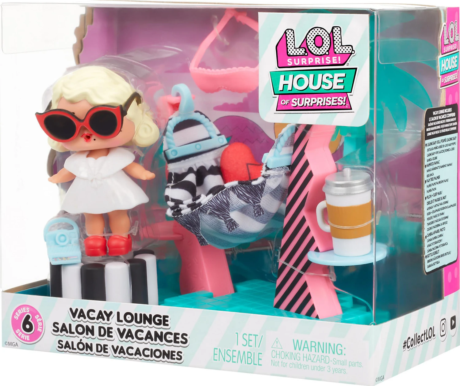 Urlaubsvibes bei den L.O.L. Surprise Mädels. Bei diesem Spielset kommen Sonne und Meer ins Kinderzimmer. Die süße Puppe zieht mit ihren großen Kulleraugen alle Blicke auf sich und genießt ihre Urlaubszeit in der bequemen Hängematte unter einer Palme mit leckerem Getränk.