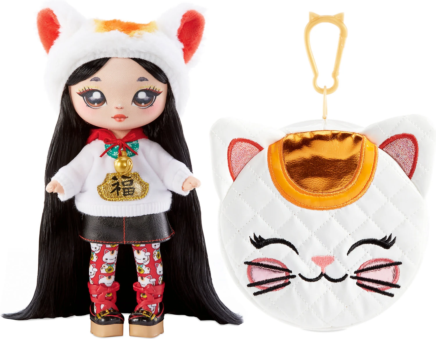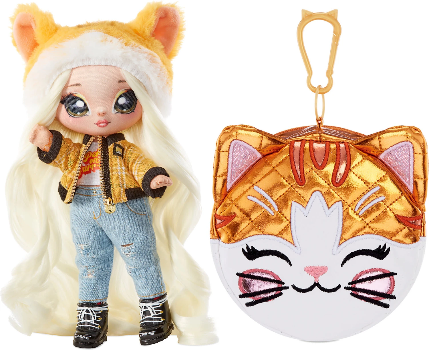 Hier kommt Spielespaß für alle Na! Na! Na! Surprise Fans! Mit der bezaubernden Na! Na! Na! Surprise 2-in-1 Fashion Doll and Purse Glam Series 2 von MAG kommt ein niedlicher Charakter der Na! Na! Na! Surprise Familie und eine weiche Geldbörse mit metallischen Glanzelementen. Die niedlichen Mode-Püppchen begeistern in ihren jeweils ganz eigenen Outfits mit wundervollen Haaren und bezaubernden Gesichtern. Die Kopfbedeckung ist fixiert und die Geldbörse punktet mit einem Karabinerhaken, damit sie am Rucksack oder an der Tasche befestigt werden kann. Für kreative Spielemomente zuhause und als Accessoire unterwegs ist dieses coole Set bestens geeignet und wird alle kleinen und großen Na! Na! Na! Surprise Fans begeistern.