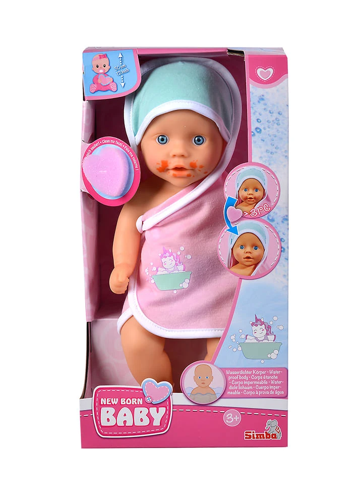 – Inhalt: Puppe, Kapuzenbadetusch, Schwamm