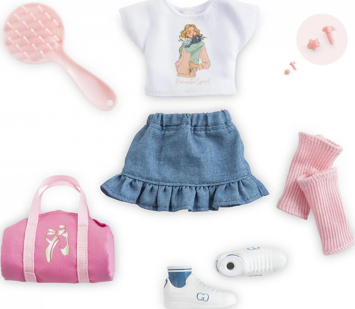 Mit dem 10-teiligen Corolle Girls – Zubehörset Romantik kommt ein bezauberndes Outfit für die Ankleidepuppe. Das Outfit begeistert mit einem Rock und einem Shirt mit Front-Print. Außerdem sind in dem Set viele Accessoires, wie Ohrringe, Stulpen, Bürste und Tasche für kreative Looks und Stylings.