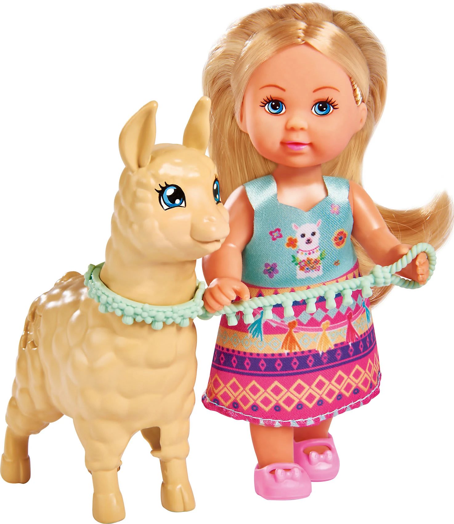 Evi Love ist jetzt auch im Land der Alpakas unterwegs! Passend zu ihrem süßen Begleiter, der brav an ihrer Leine geht, trägt sie ein Ethno-Kleid und niedliche Schuhe.