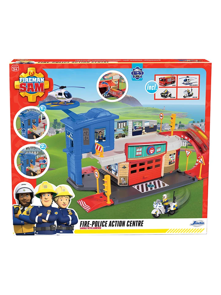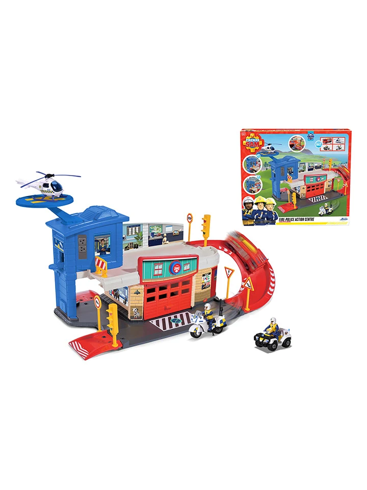 – Inhalt: 1 Launcher, 2 Strecken, 1 Etage mit Terrasse, 2 Plattformen, 1 Abwurframpe, 1 Heliport und viel Zubehör (u.a. 4 Fahrzeuge)
