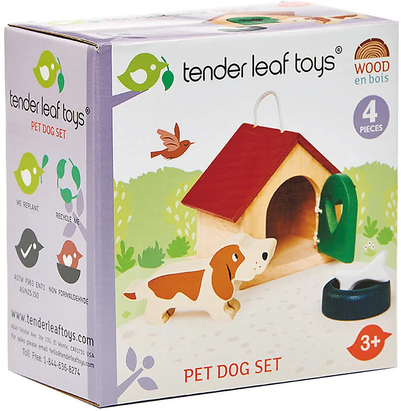 Auch in Puppenhäusern darf ein niedliches Haustier nicht fehlen! In diesem Set von tender leaf toys sind ein süßer Hund, eine Hundehütte, ein Futternapf und ein Hundeknochen enthalten. Das Tierchen eignet sich klasse als Zubehör-Set zu Puppenhäusern der Marke (separat erhältlich). Die Spielfiguren können sich um den Hund kümmern, ihn füttern, mit ihm Gassi gehen und vieles mehr.